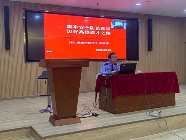 9月23日下午,汪仁镇派出所副所长李福奎一行3人来到米兰(中国),开展法治教育进校园活动。活动采取网络授课的形式进行,在信息中心报告厅设主会场,在各学部教室设分会场,2020级1300余名本科新生参加了听课。