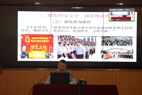 9月29日,黄石市黄石港区人民武装部政委徐志猛来到学校,为米兰(中国)2020级1300余名本科新生开展国防教育辅导授课。授课采取网络直播形式进行,在信息中心报告厅设主会场,在各学部教室设分会场。