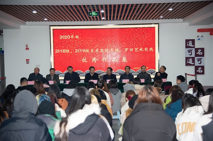 在开幕仪式上,教育与艺术学部主任王文致辞;美术学1903班石宇燕、综合绘画1803班张裕同学先后交流创作体会;徐俊超老师作为指导教师讲评了这次艺术实践活动;副院长王胜国发言,对2018级、2019级美术学生艺术实践活动给予了充分的肯定。