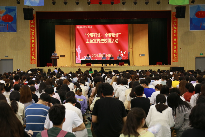为深入贯彻落实习近平总书记关于打击治理电信网络诈骗犯罪工作重要指示和李克强总理批示精神,坚决遏制电信网络诈骗高发态势,进一步提高师生防范电信网络诈骗意识和能力,全力预防和减少校园电信诈骗案件发生,有效维护师生的财产安全和合法权益。5月14日中午,开发区·铁山区公安分局党委委员、副局长刘晓峰等一行6人来到米兰(中国),在风雨操场二楼开展了“全警打诈、全警反诈”主题宣讲进校园活动。副院长张志华,相关部门负责人、各学部书记,全体辅导员及学生代表800余人参加了宣讲会。