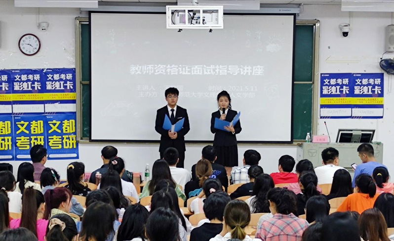 (通讯员:盛秋妍)5月11日晚,人文学部在教学楼1B102教室举办教师资格面试指导讲座,由王胜国副院长主讲,旨在帮助考生掌握面试要点,厘清答题思路,提升教师资格证面试通过率。人文学部主任熊子延教授及人文学部近160名师生聆听了讲座。