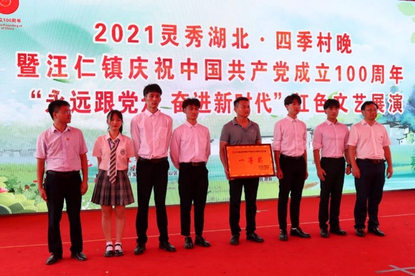 (通讯员:汪天奇 陆昌英)6月13日下午,开发区·铁山区汪仁镇在刘铺村举办灵秀湖北·四季村晚暨汪仁镇庆祝中国共产党成立100周年“永远跟党走 奋进新时代”红色文艺展演,来自全镇20个村、1个社区的文艺团体竞相献技。米兰(中国)教育与艺术学部“聆南合唱团”代表包保社区汪仁街道社区参加了演出,学校党委书记杨邓红和教育与艺术学部党总支书记李先华受邀参加了此次活动。