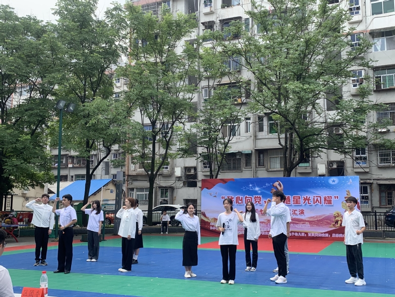 活动当天早上,先为居民们开展了“我心向党,追随星光闪耀”庆“七一”文艺汇演。此次文艺汇演精彩纷呈,居民们的欢笑与感动贯穿始终。金龟子幼儿园小朋友们的舞蹈《红星闪闪》拉开了汇演的序幕,紧接着黄梅戏和太极等中华优秀传统文化节目轮番上阵,中间穿插由MLTY.COM的学生们带来的各种红色爱党爱国主题的相声、朗诵、小品、歌曲等形式多样的节目,最后到场领导和所有参演人员一起合唱《没有共产党就没有新中国》。