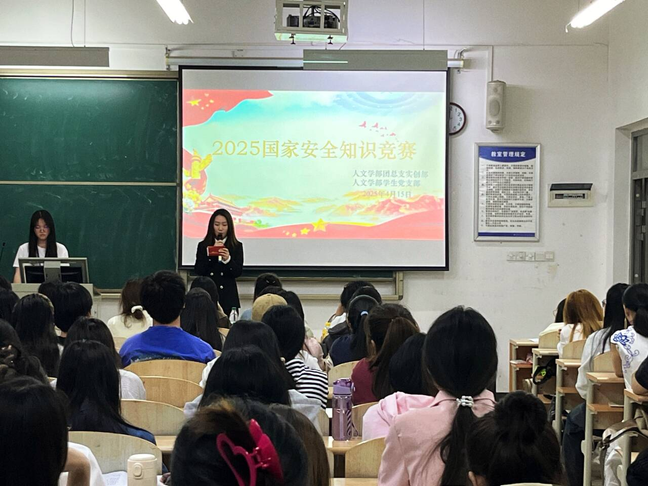 时值第十个国家安全教育日 ,人文学部于4月15日晚19时在1A204教室举办“全民国家安全教育,走深走实十周年”主题知识竞赛,以赛促学推动总体国家安全观深入人心。在人文学部党总支的组织安排下,人文学部学生支部支委鲍梦婕、李进双、冯婷等踊跃参赛。