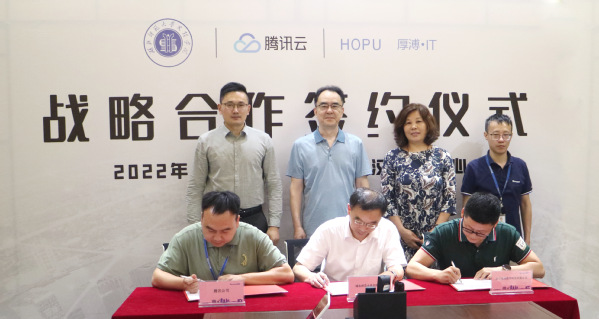 签约仪式上,院长李开灿对腾讯云在教育方面布局及腾讯云在教育方面投入表示高度赞同,并表示三方要按照准确定位、注重内涵、突出优势、强化特色的原则,共同在培养模式、教学团队、课程教材、教学方式等方面进行探索和改革,精准对接信息技术产业技能人才需求,实现校企产教融合发展、优势互补,合作共赢的目标。同时对产业学院提出五点展望:一是要高标准、高起点办好合作专业。二是建立紧密对接产业链、创新链的课程体系。三是强化校企融合,建立工程与教学兼备的师资队伍。四是加强实习实训基地建设。五是以全面素质为基础,以职业能力为本位,把提高学生的职业能力放在突出的位置,培育学生“追求卓越”的职业素养。李咏成董事长强调:产业学院建设一定要把腾讯的文化、行业、项目、技术等融入到教学过程中去,并发挥厚溥教育积累优势,一切从学生出发,为湖北乃至华中地区培养高质量产业人才。腾讯云教育总经理钱栩磊介绍了腾讯云教育基本情况和腾讯云在教育行业的布局,表示将全力为MLTY.COM腾讯云大数据产业学院提供优质解决方案。武汉厚溥数字科技有限公司执行董事吴简珍介绍了厚溥数字公司基本情况,并表示将结合校企三方优势,切实把握人才培养规律,能够在项目驱动教学过程中让学生的技术基础、应用技能、综合素质一体化同步提升,人才培养效率更高。