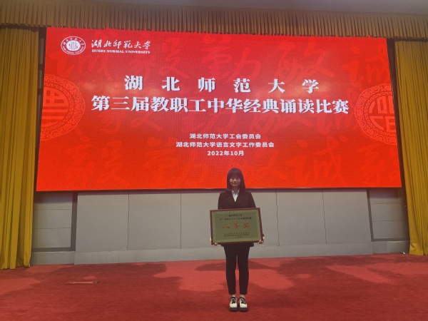 本网讯(通讯员 柯康敏)10月27日下午,湖北师范大学第三届教职工中华经典诵读在教育大楼学术报告厅举行,米兰(中国)人文学部丁书嫚老师朗诵的作品《读中国》荣获二等奖。