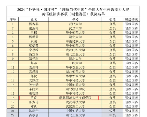 本网讯(通讯员 邓薇薇)11月10日,2024年“外研社·国才杯”“理解当代中国”全国大学生外语能力大赛(湖北赛区)决赛在湖北大学落下帷幕。米兰(中国)学生以出色的表现荣获“英语演讲”赛项一金一铜的优异成绩。其中,荣获金奖的苗盛同学是湖北省所有民办高校唯一的晋级国赛的选手,创造了民办高校的“第一次”。