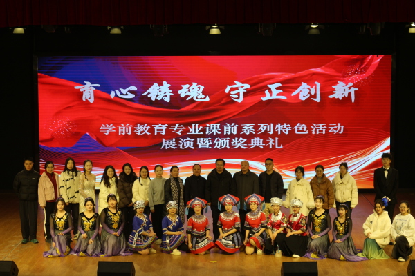 双人舞《苗族魂》拉开晚会序幕。“课前十分钟”活动展演分为讲故事,手指游戏,舞蹈三个环节,此外还延展至微课大赛,创新创业大赛及园所实践活动。代表作品《动物职业介绍所》通过小动物之间的互动,形象演绎出职场求职的画面;手指游戏《神奇动物变变变》根据可爱小动物的形态特征,创造出生动有趣的手指舞蹈;《民族舞串烧》融汇壮族、苗族、维吾尔族传统舞蹈元素,尽显中国多元民族文化深厚底蕴,此外还有激动人心的颁奖环节,将全场气氛推向高潮。最后晚会在《致学前:行稳致远,守正创新》表演中落下帷幕。