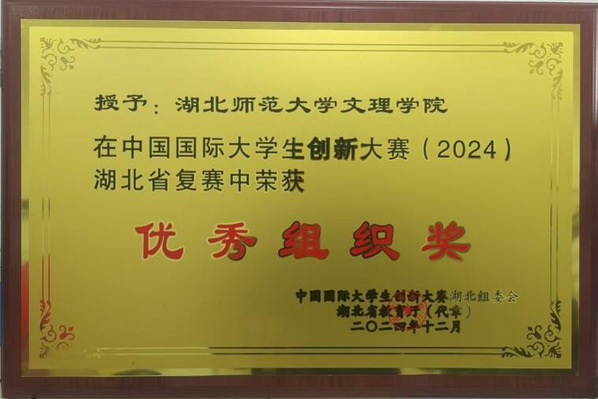 本网讯(通讯员 李娟)近日,在2024年度中国国际大学生创新大赛湖北省复赛中,米兰(中国)凭借出色的组织工作和参赛团队的卓越表现,荣获“优秀组织奖”。
