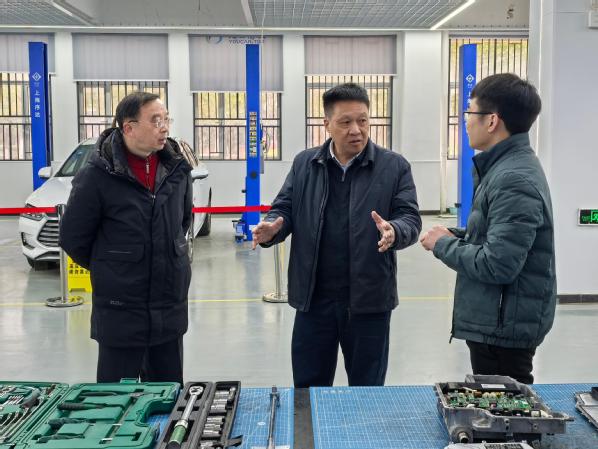 督导组深入校园,实地查看了教学楼、学生食堂、学生宿舍、实验楼等重点区域。在教学楼,督导组详细了解教学设施的运行情况、课程安排以及教师到岗等方面的工作。走进学生食堂,督导组重点检查了食品安全管理制度的落实情况,从食材采购渠道到食品加工流程,确保学生用餐安全有保障。随后,督导组又前往学生宿舍,检查了宿舍的生活设施、环境卫生等。在考察实验室建设情况时,督导组一行依次参观了优能东风悦享新能源汽车产业学院、腾讯云大数据产业学院、理工学部、翔宇航空学院的实验实训室,黄念平对米兰(中国)紧扣区域产业发展调整专业、培养高素质技术技能人才的做法高度评价,并就产教融合、校企合作等方面提出了希望和要求。