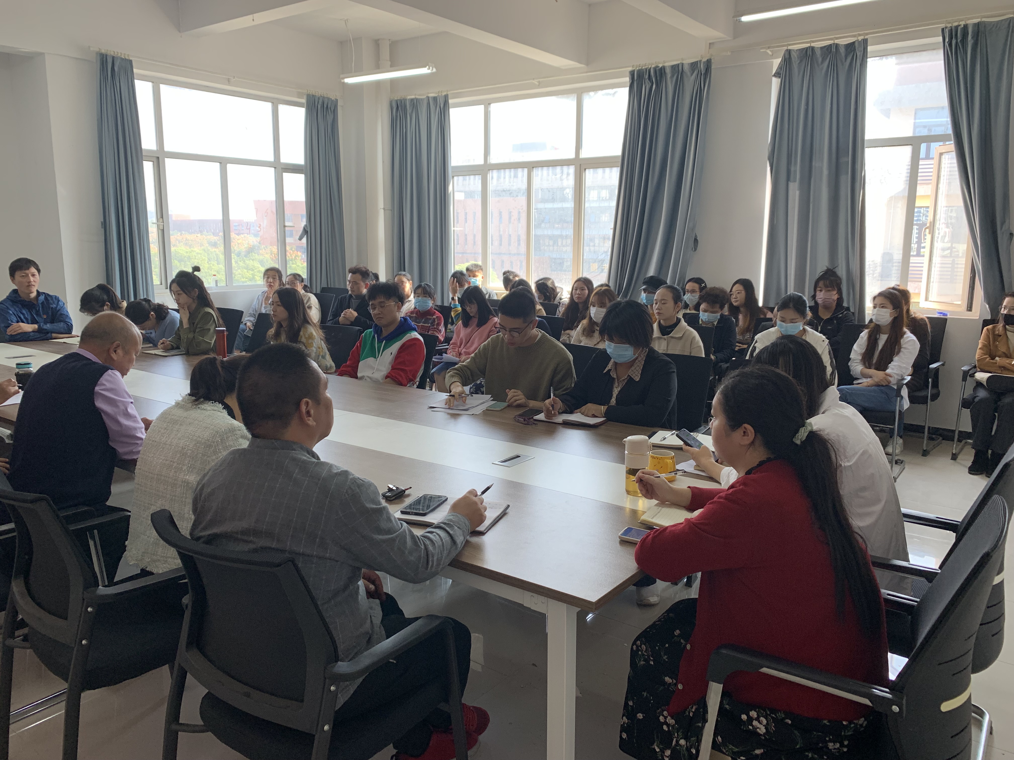 2022年11月4日中午12:30,教育与艺术学部在1号实验楼414会议室召开了学部全体教职工工作例会。本次会议共包括三项议程:一、全体教职工一起进行政治理论学习,李先华、何雅嫣两位老师分别主持学习了党的二十大精神和疫情防控相关规定;二、王文主任从疫情防控、骨干及骨干培育教师培养、规范课堂建设、期中教学检查准备、期末考试安排、考研辅导、实习相关工作、一流专业建设、青年教师讲课比赛准备等方面进行了工作安排;三、各教研室组织教师学习讨论工作,开展教研室活动。
