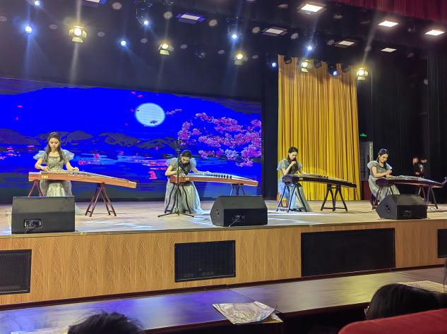 此次课程实践展演活动由学部主任王文教授的致辞拉开帷幕。音乐会开始以一首原汁原味的民歌《直尕思得》向大家展现了土家族的豪放与洒脱。随后,乐器演奏环节也是精彩纷呈,古筝演奏有白族风格的《蝴蝶泉边》、江苏民歌《茉莉芬芳》、瑶族风格《瑶族舞曲》、汉族器乐曲《春江花月夜》,吉他演奏有四川民歌《康定情歌》,清脆素雅的古筝、柔和饱满的吉他使得曲子更加生动。紧接着晚会以不同民族的歌曲充分展现了不同地域的少数民族歌曲的特色,他们以独特的表演形式博得了阵阵喝彩。最后全体演出人员共同演唱《爱我中华》,此次“传中华文化,展华彩国韵”地域风格民族特色主题音乐会圆满结束。