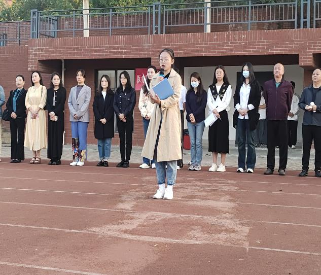 教艺学部2000余名师生参加了本次升旗仪式。校国旗班全体成员身着军礼服,迈着整齐且有力的步伐,护着国旗一步步踏向升旗台,全体师生精神饱满,昂首挺胸,庄严肃穆,行注目礼,注视着国旗在国歌中缓缓升起,升旗完毕后学生代表黄娟、团委指导老师谭青、教工党员代表徐乔婕分别发表了热情洋溢的讲话,鼓励广大学生在中华民族伟大复兴之际要更加努力学习、勇于担当,担负起历史赋予我们的使命。最后,学部主任王文要求同学们要“多读书,多读中国经典之书,尤其是要读《论语》、《孟子》、《大学》、《中庸》”,勉励同学们在未来的求学生涯中要勤奋努力,不负韶华。