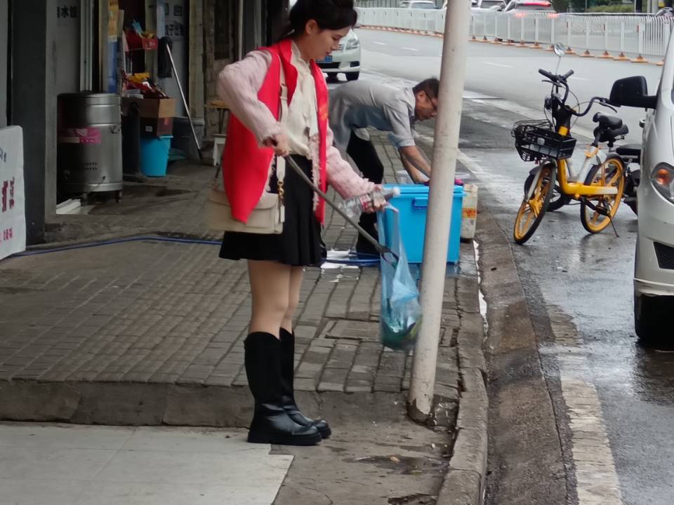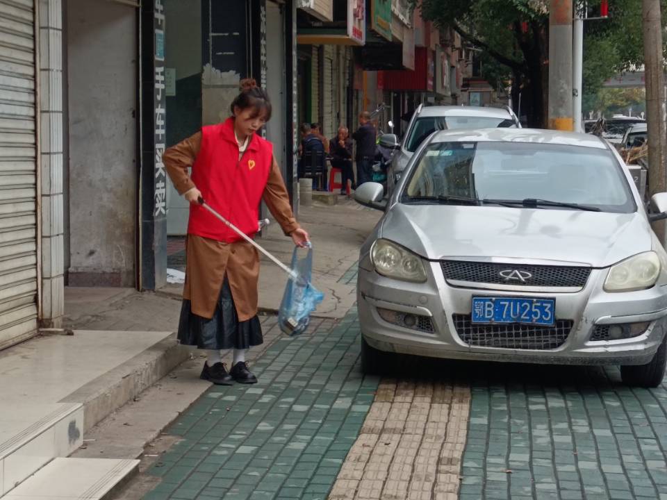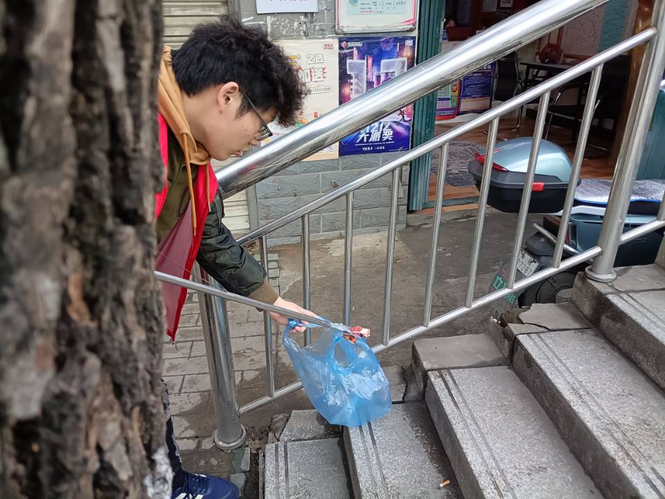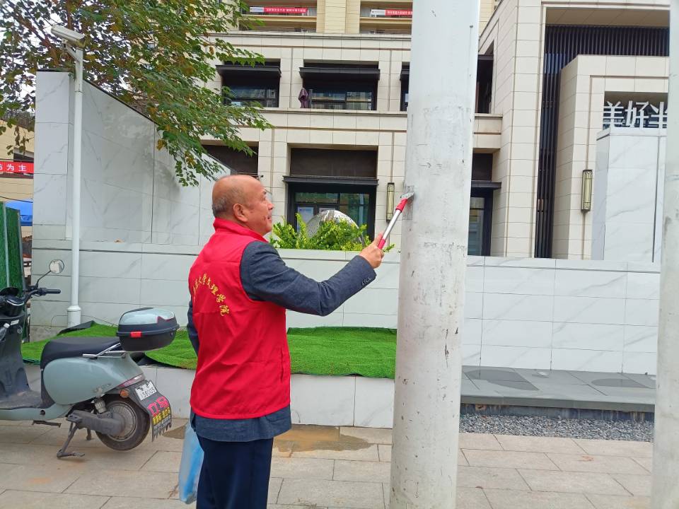 志愿者们在主干路旁、各条小路里,他们有的手拿垃圾夹,沿途捡拾烟头、生活垃圾,有的手拿小铲子,清理墙体,有的打扫地面卫生,党员志愿者的“红马甲”成为王家湾社区一道流动的风景线。