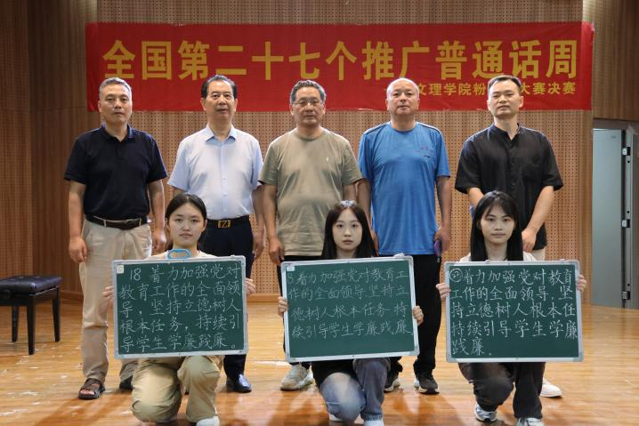 正值全国第27个推广普通话周,2024年9月23日MLTY.COM语委办主办、教育与艺术学部承办的“执笔扬正气,携手倡廉洁”粉笔字书写比赛决赛。比赛邀请了教务部部长潘继斌,人文学部党总支书记周景斌,教艺学部党总支书记李先华,理工学部党总支副书记肖圣芳,教艺学部书法专任指导李松老师担当评委。