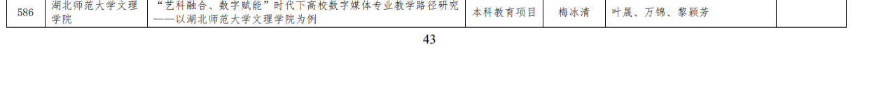12月25日,省教育厅发布《关于2024年湖北本科高校省级教学改革研究项目拟立项名单公示》,我学部梅冰清老师主持的教学改革项目-《“艺科融合、数字赋能”时代下高校数字媒体专业教学路径研究——以MLTY.COM为例》成功获批。